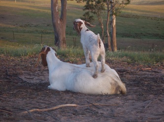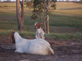 Breeding does, Cadenza has a different approach. The does are raised together under paddock conditions for 12 months and then classified for breeding, sales, and showing. This is different to most studs who select potential kids at an early age and feed heavily to prepare for shows. This means these heavily fed kids have an unfair advantage when comparing their growth rates to their drop mates. Because the kids are raised together for 12 months and individual animals are not "pumped" for the shows, it is rare for this stud to show in the junior classes. However the benefits are that the best animals shine in the group because of "genetic advantage" and not "feed advantage". This is an important, but rarely considered point when choosing breeding animals for a herd and specially choosing a sire for the herd. When buying animals from a breeder, ask what the animals are being fed so you can consider whether it is similar to your management, and ask to see their siblings and relations. This will give a better idea of their genetic merit.